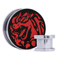 Limited Edition, High Quality Silver Steel Double flare Screw Back Black & Red Inlay Plugs featuring the laser engraved Pokemon "Inferno Charizard"