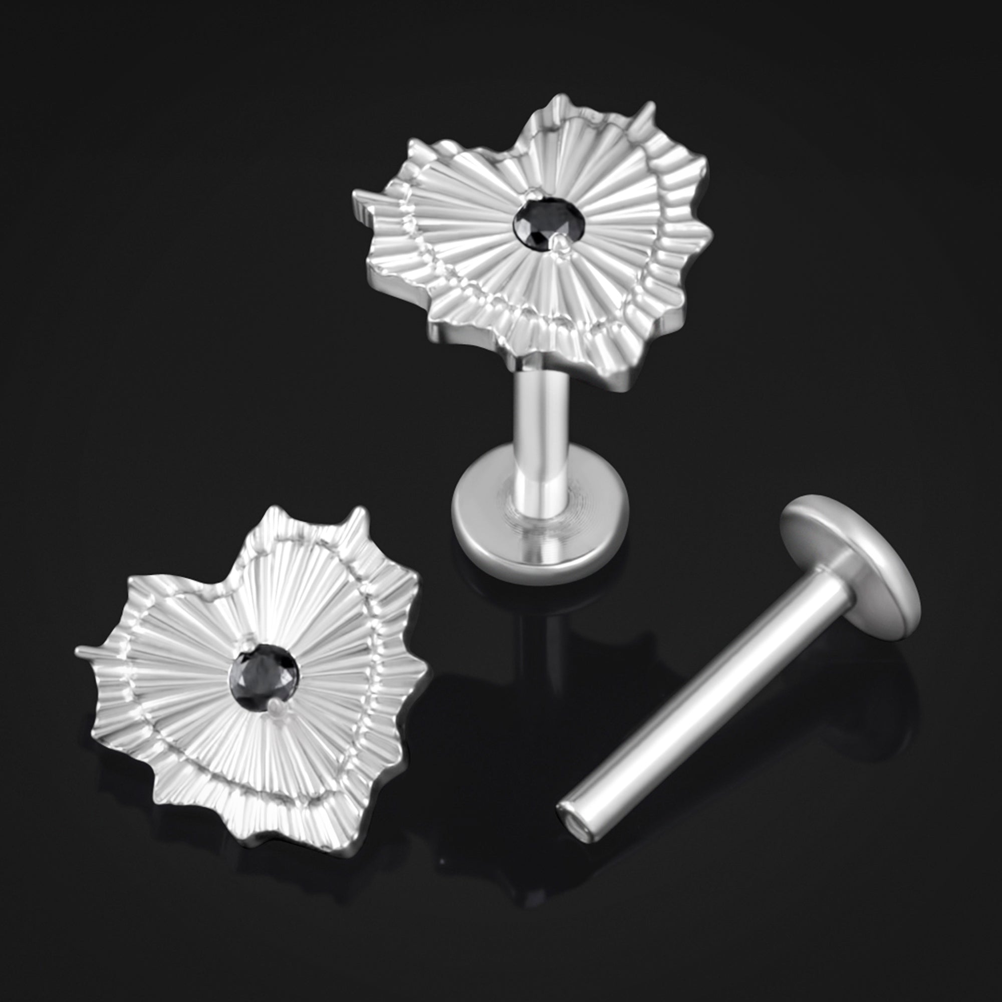 This Black Jewelled Silver Sacred Heart labret stud is crafted from high-quality titanium, known for its strength and biocompatibility. Featuring a 1.2mm gauge and an internally threaded design, it ensures a secure and comfortable fit while minimizing irritation. Its minimalist style makes it an essential choice for those seeking reliable, everyday wear with professional-grade materials.