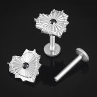 Black Jewelled Silver Sacred Heart Internally Threaded Titanium Labret Stud 1.2mm Gauge