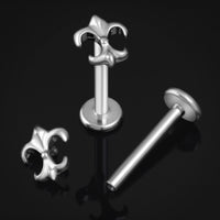Labret Stud, Silver, Iris Flower, Internally Threaded, Titanium, 1.2mm Gauge