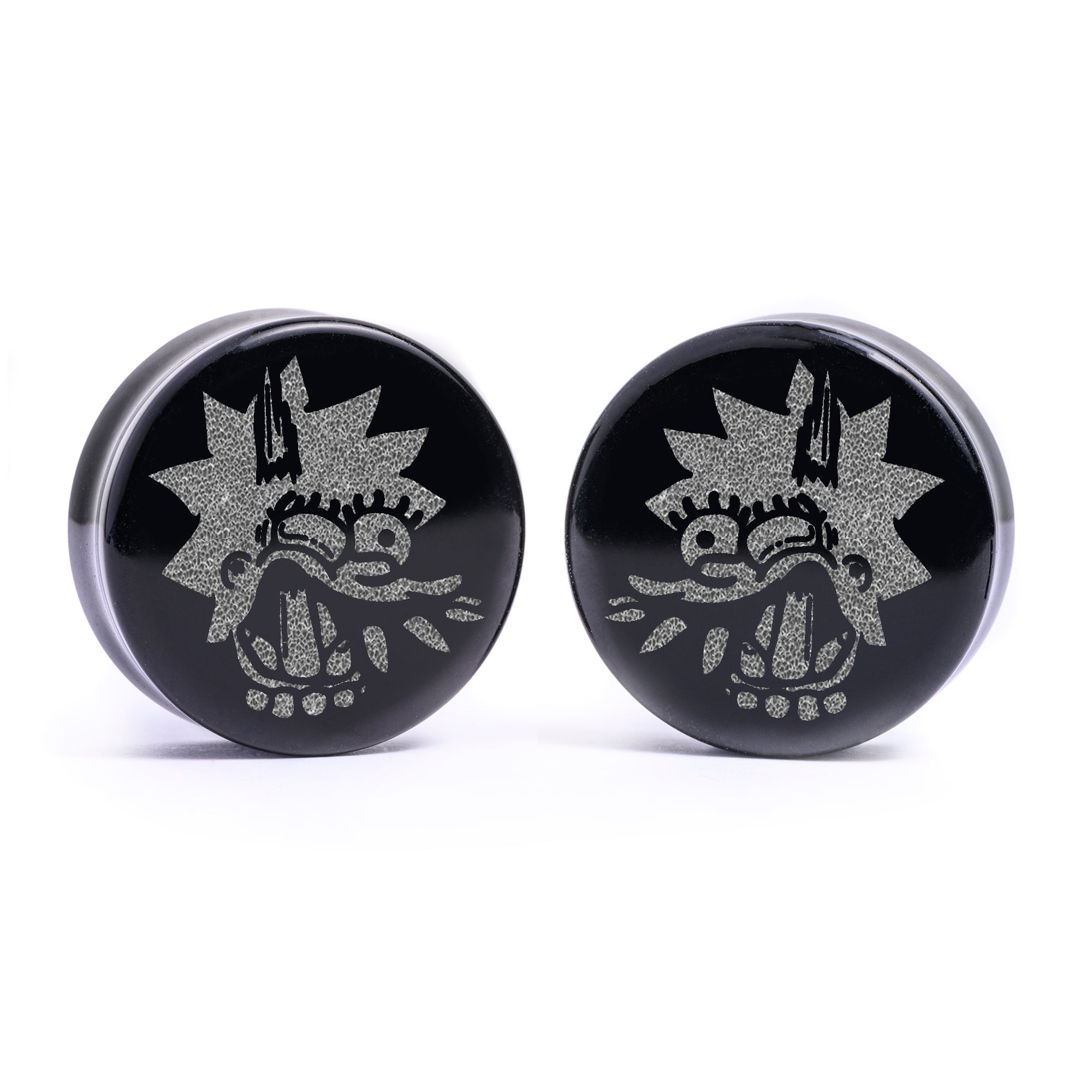 Limited Edition Flat Faced Double flared Black Glass Plugs featuring our laser engraved “Lisa Needs Braces" design. This product is part of our Halloween Promotion
