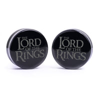 Flat Faced Doubleflared Black Glass Plugs featuring our laser engraved “LOTR Logo" design.