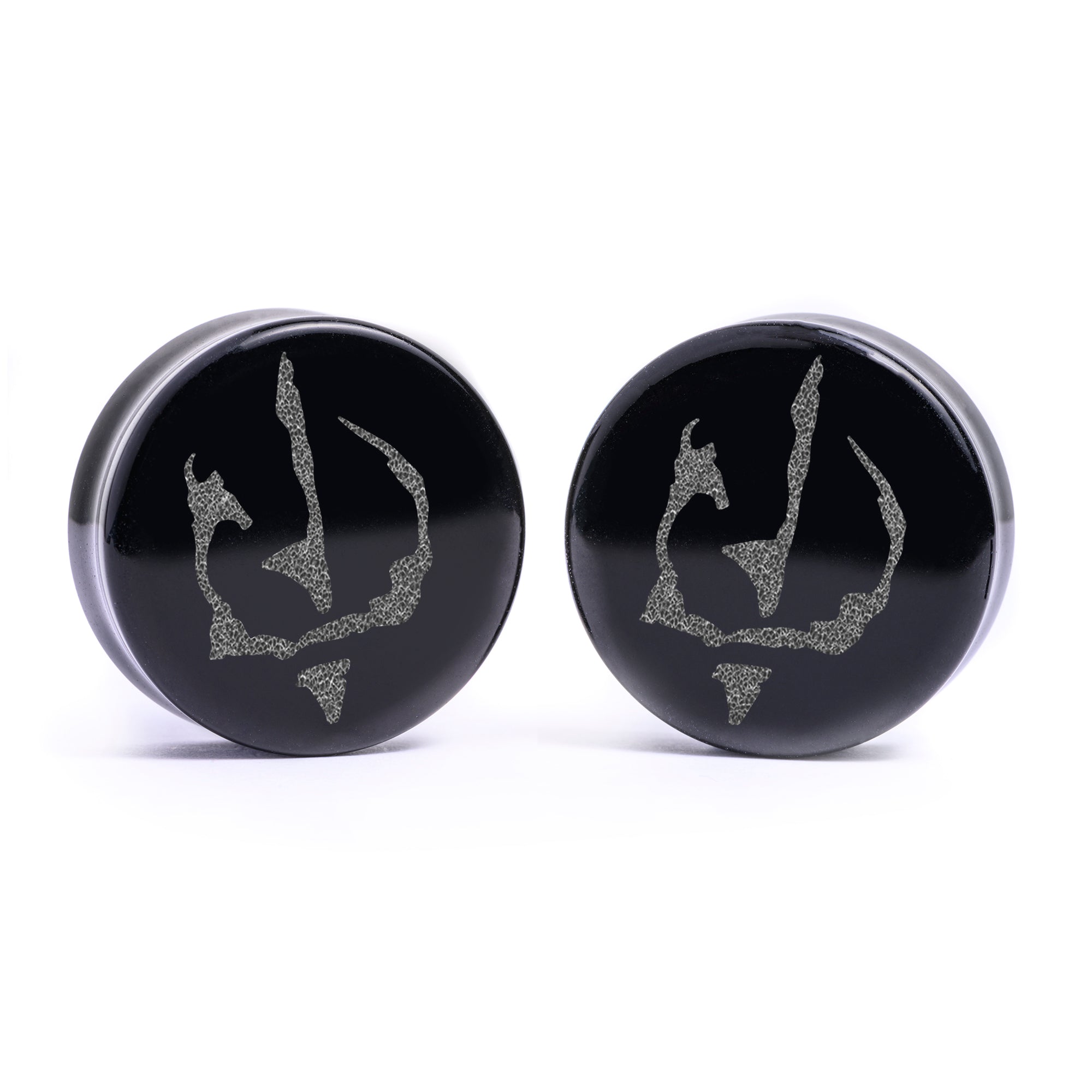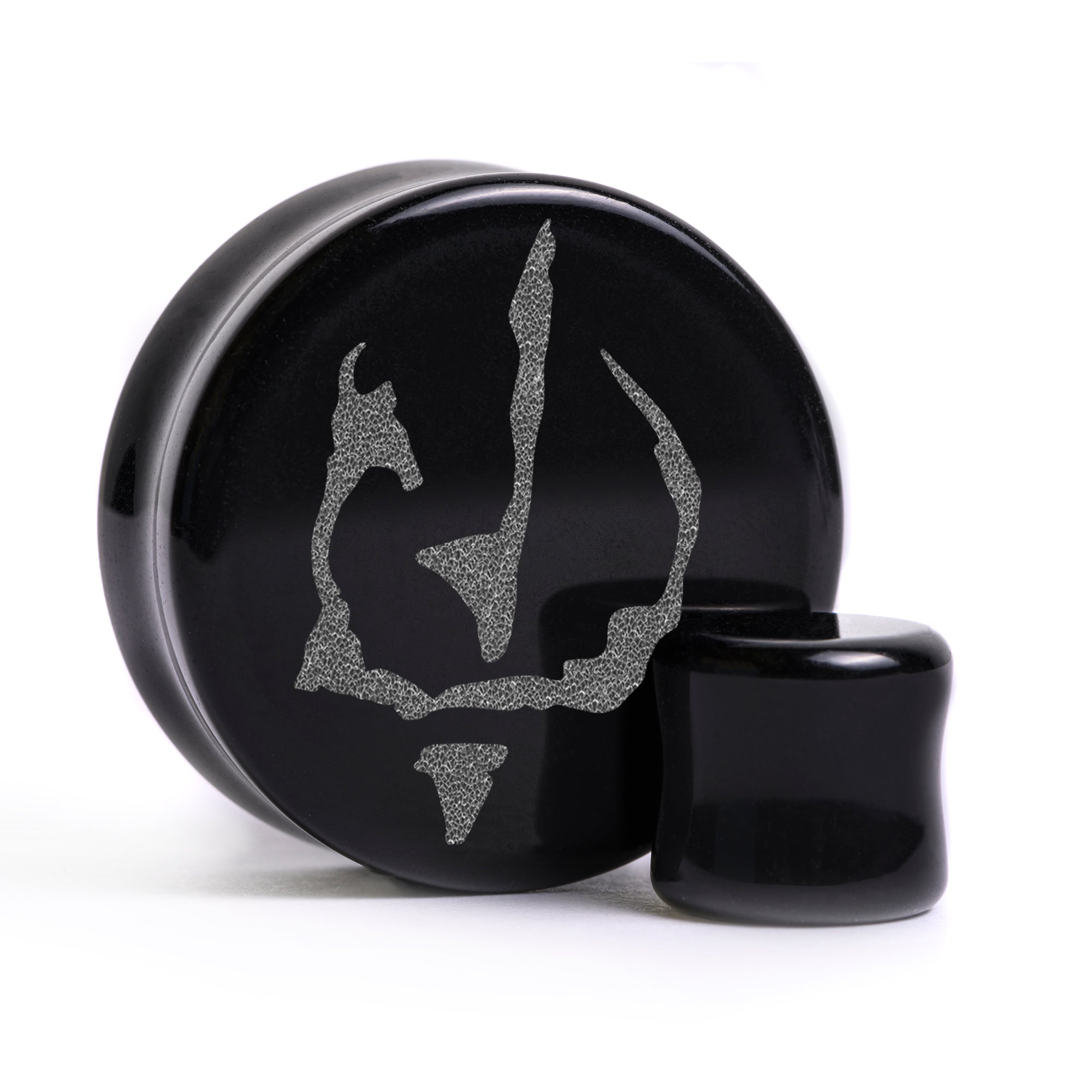 Flat Faced Doubleflared Black Glass Plugs featuring our laser engraved “LOTR Mark Of Sauron" design.