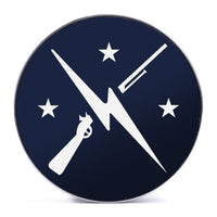 Limited Edition, High Quality Silver Steel Double flare Screw Back Blue & White Inlay Plugs featuring the laser engraved "Minutemen Logo"
