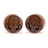 Convex Doubleflared Saba Wood Plugs featuring our laser engraved “Mojo Jojo" design.