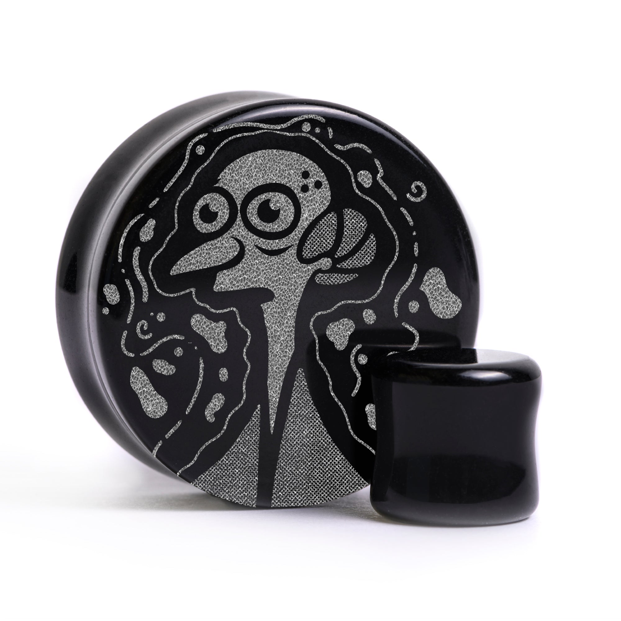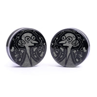 Limited Edition Flat Faced Double flared Black Glass Plugs featuring our laser engraved “Mr. Burns" design. This product is part of our Halloween Promotion