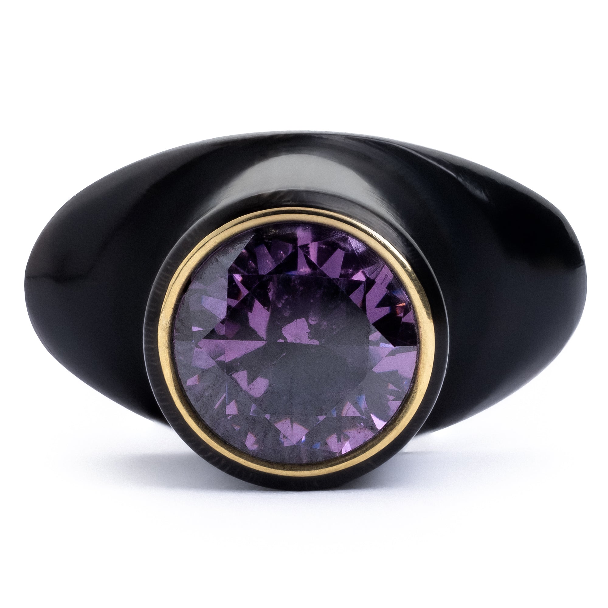 Hand Carved Black Buffalo Horn Labrets With Purple Jewelled Inlay