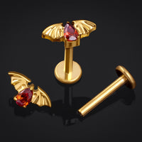 Red Jewelled Bat Gold Internally Threaded Titanium Labret Stud 1.2mm Gauge