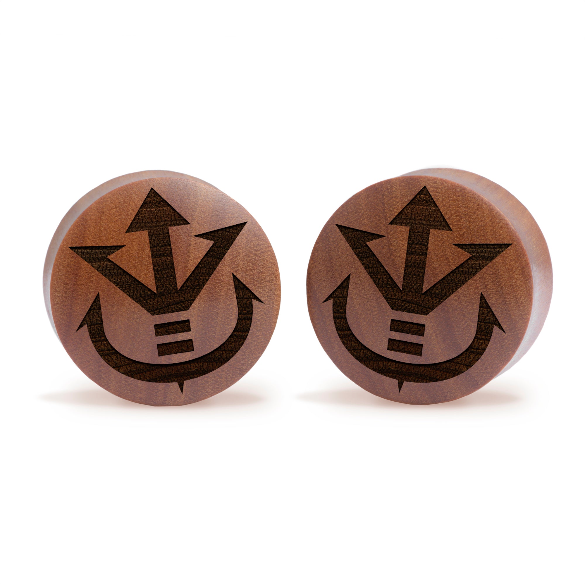 Convex Doubleflared Saba Wood Plugs featuring our laser engraved “SAIYAN LOGO - DRAGON BALL Z" design.