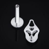 Silver Ghost Face Internally Threaded Titanium Labret Stud 1.2mm Gauge
