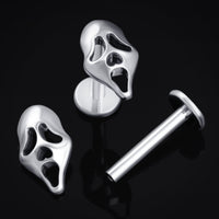 Embrace the eerie spirit of Halloween with this Silver Ghost Face Internally Threaded Titanium Labret Stud. Its gleaming silver finish and Ghost Face design bring a subtle yet spooky charm to your jewellery collection. Crafted with a 1.2mm gauge and an internally threaded design ensuring a secure, comfortable fit, this labret stud is the perfect haunting accessory to cast a shadow of style and mischief wherever you go.