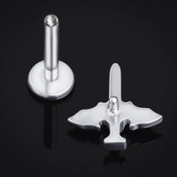 Silver Jewelled Bat Wing Sword Labret Stud Internally Threaded Titanium 1.2mm Gauge