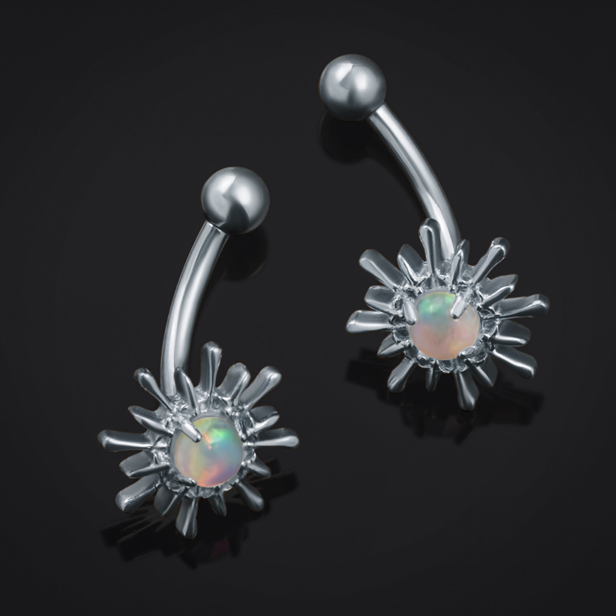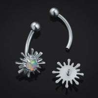 Enhance your look with our stunning Silver Opal Sparkle Curved Barbell finished with a Opal Stone this Barbell is sure to bring the Sparkle to any look! The 1.2mm gauge ensures compatibility with standard piercings, while the corrosion-resistant titanium offers long-lasting wear. Perfect for those who dare to stand out.