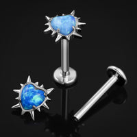Silver Spiked Heart Blue Opal Titanium Stud - 6mm / 8mm / 10mm Internally Threaded / Body Jewellery / Lip / Nose / Ear Labret