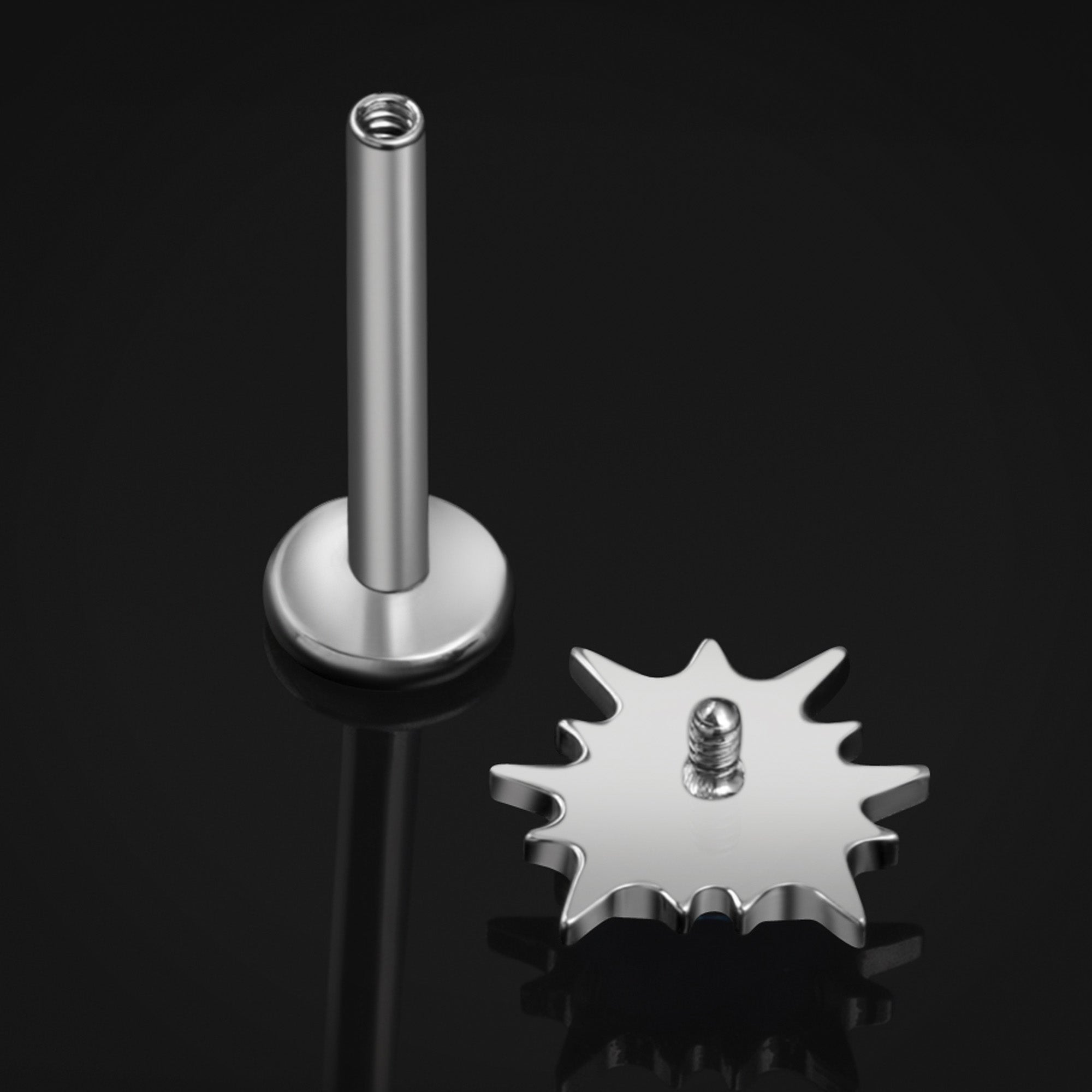 This Spiked Heart Blue Opal labret stud is crafted from high-quality titanium, known for its strength and biocompatibility. Featuring a 1.2mm gauge and an internally threaded design, it ensures a secure and comfortable fit while minimizing irritation.