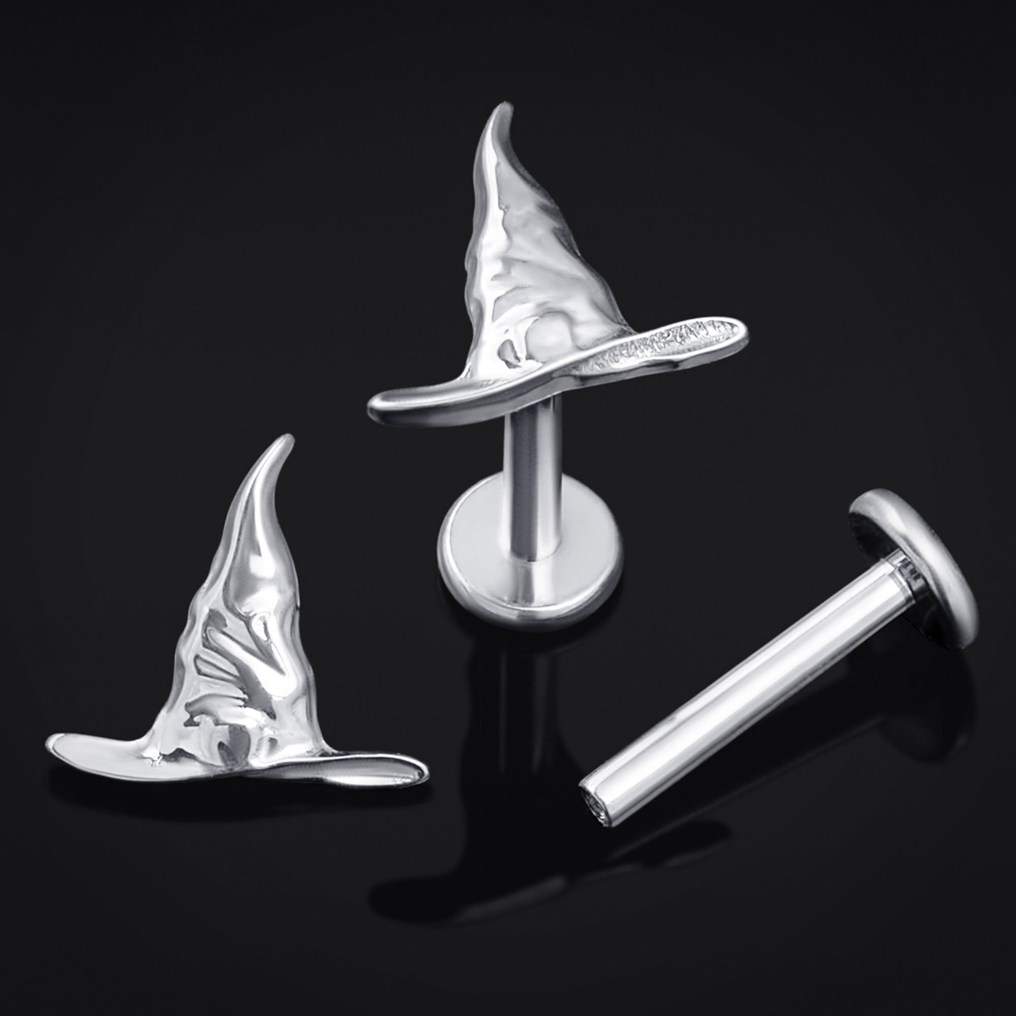 Embrace the eerie spirit of Halloween with this Silver Witches Hat Internally Threaded Titanium Labret Stud. Its gleaming silver finish and delicate Witches Hat design bring a subtle yet spooky charm to your jewellery collection. Crafted with a 1.2mm gauge and an internally threaded design ensuring a secure, comfortable fit, this labret stud is the perfect haunting accessory to cast a shadow of style and mischief wherever you go.