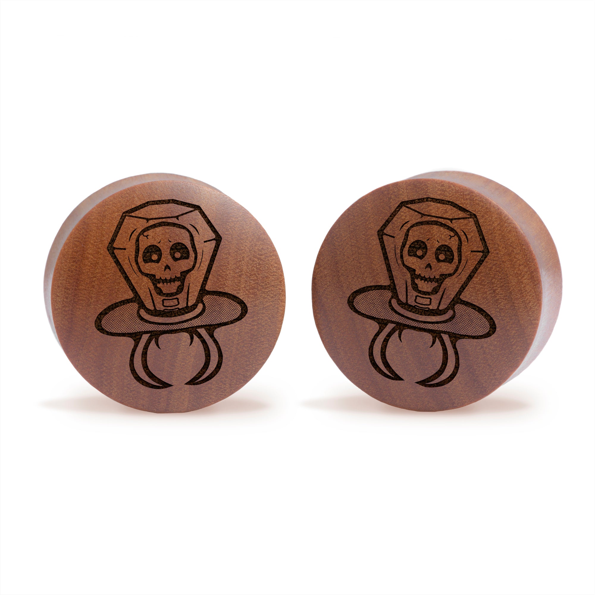 Limited Edition Convex Doubleflared Saba Wood Plugs featuring our laser engraved “Skull Candy Ring" design. This product is part of our Halloween Promotion
