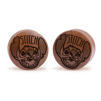 Convex Double flared Saba Wood Plugs featuring our laser engraved "Stitch" design.