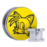 Limited Edition, High Quality Silver Steel Double flare Screw Back Yellow & Black Inlay Plugs featuring the laser engraved "Tails"