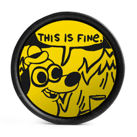 Limited Edition Double flared Ebony Yellow & Black Inlay Wood Plugs featuring the laser engraved "This Is Fine"
