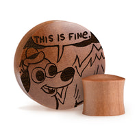 Convex Doubleflared Saba Wood Plugs featuring our laser engraved “This Is Fine" design.