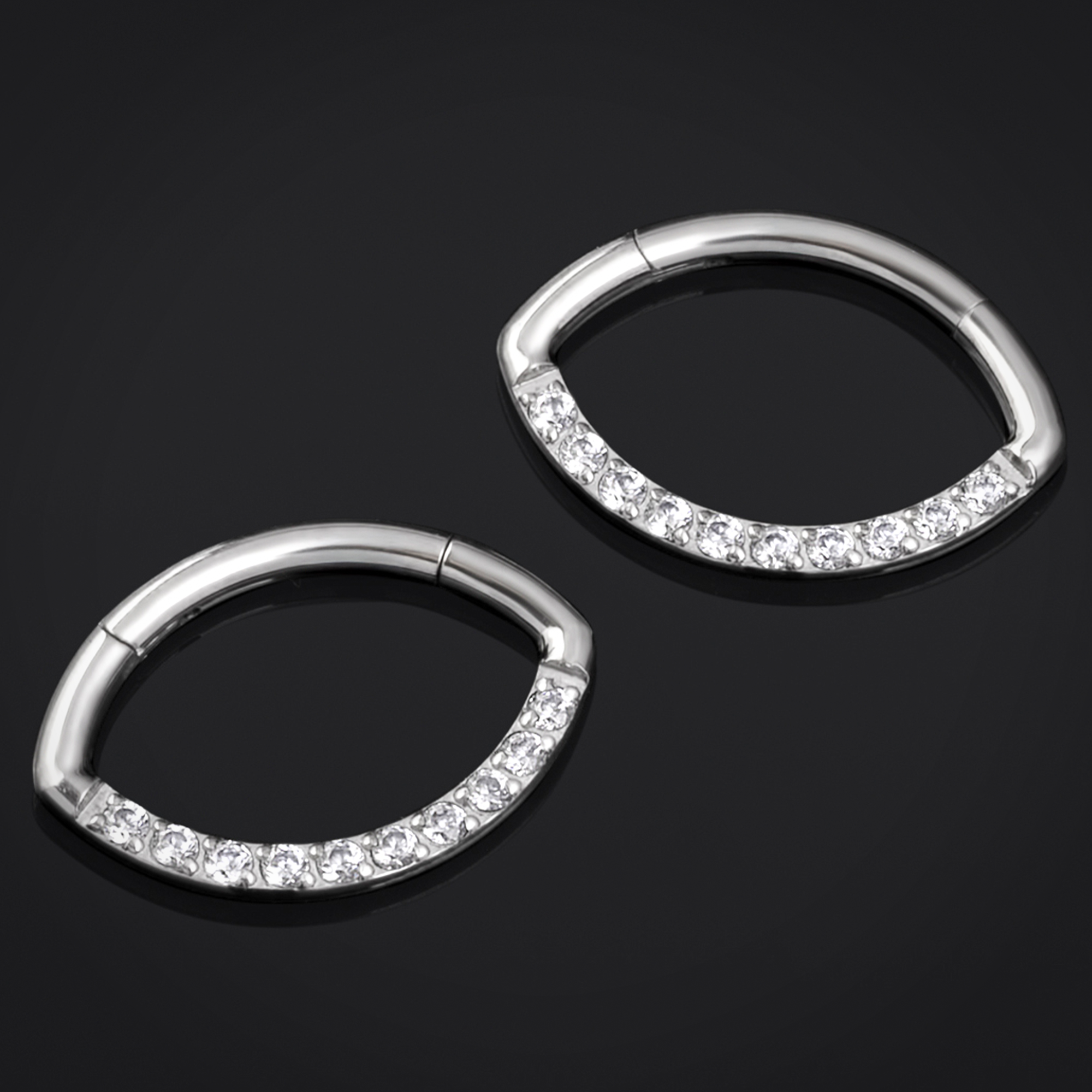 Titanium Marquise Hinged Segment Ring with Clear Gems.
