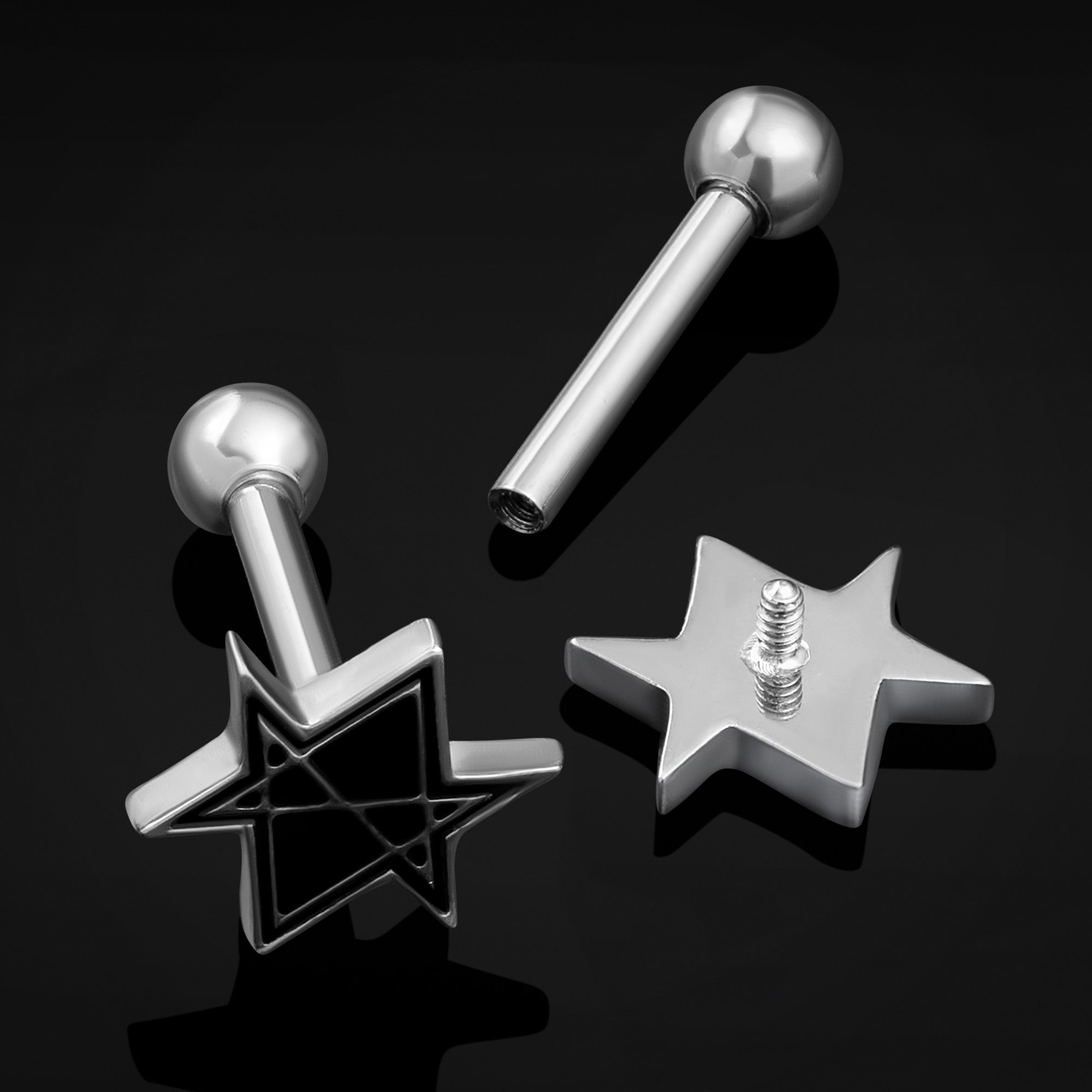 Featuring internal threading for safer, smoother insertion, this titanium tragus bar prioritises your piercing health whilst delivering undeniable style. The Hexagram design makes a bold statement, complemented by a radiant silver finish that catches every light. Hypoallergenic titanium means zero compromise on comfort—perfect for sensitive skin or fresh piercings.