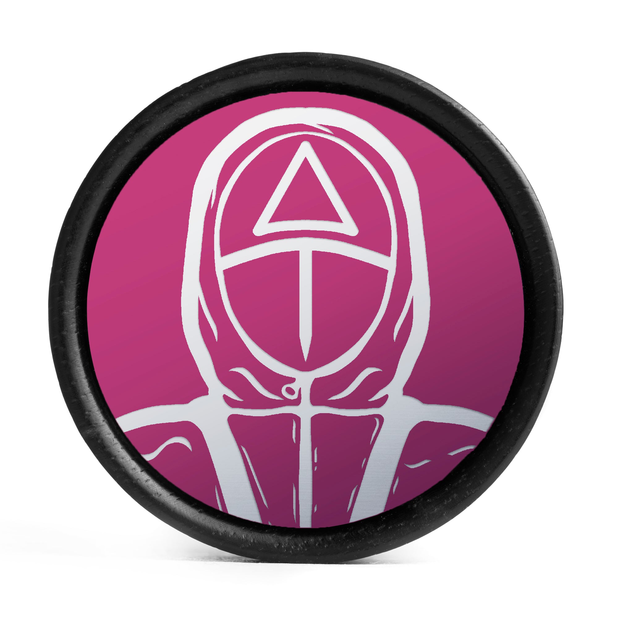 Limited Edition Double flared Ebony Pink & White Inlay Wood Plugs featuring the laser engraved "Triangle Guard"