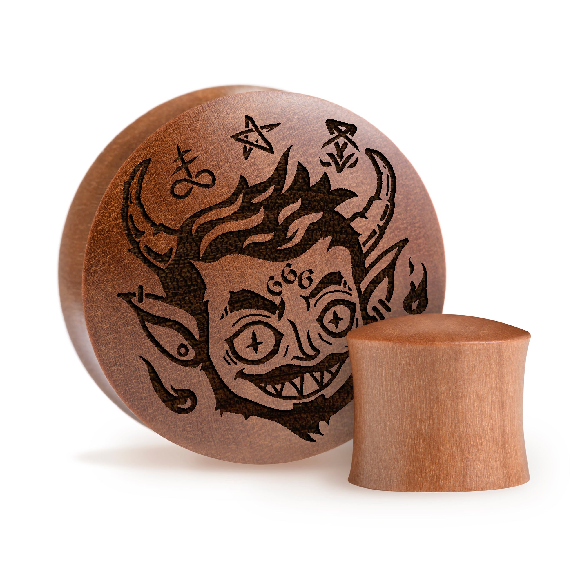 Limited Edition Convex Doubleflared Saba Wood Plugs featuring our laser engraved “Trickster Devil" design. This product is part of our Halloween Promotion