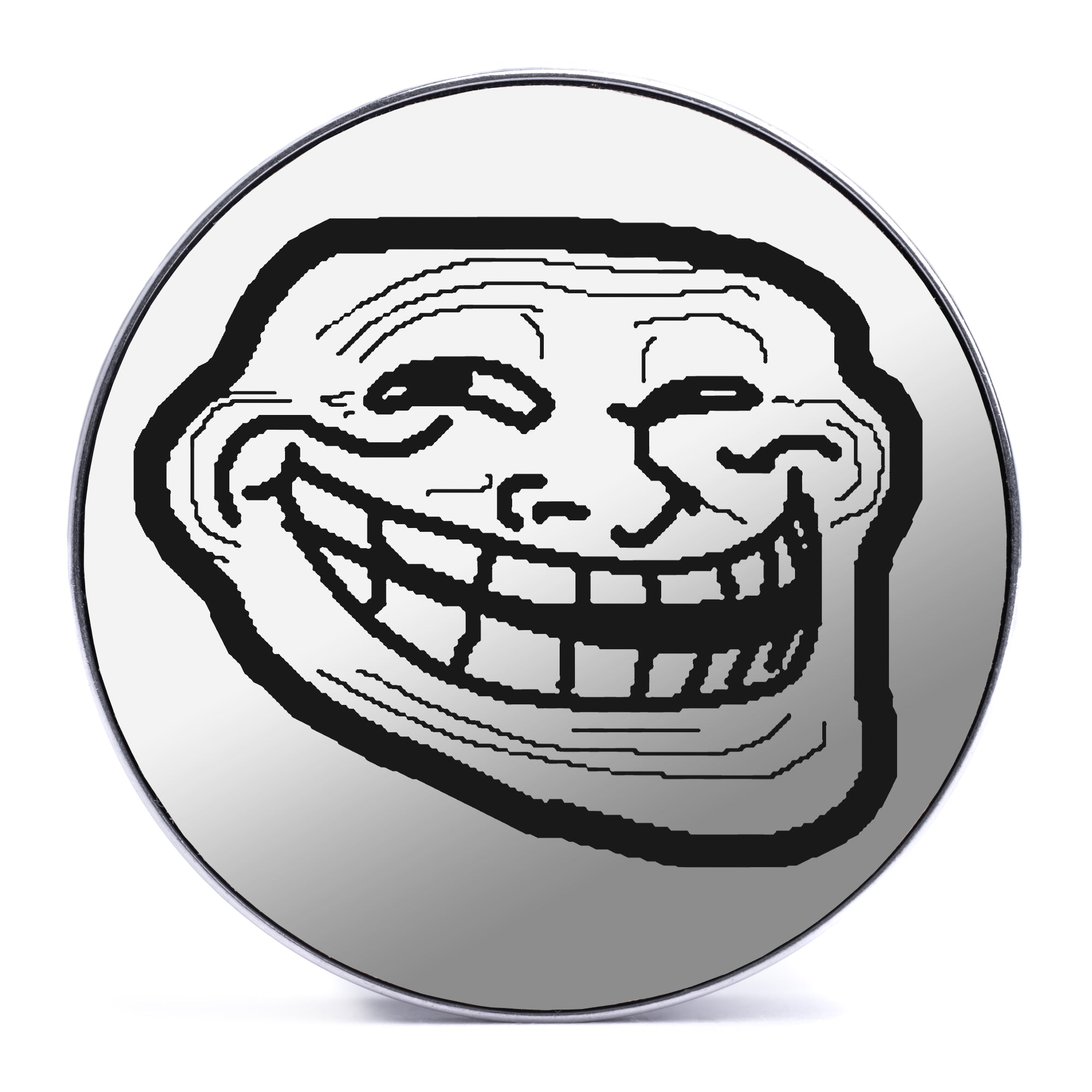 Limited Edition, High Quality Silver Steel Double flare Screw Back White & Black Inlay Plugs featuring the laser engraved "Troll Face"