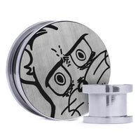 Limited Edition, High Quality Silver Steel Double flare Screw Back Brushed Silver & Black Inlay Plugs featuring the laser engraved "Unsettled Tom"