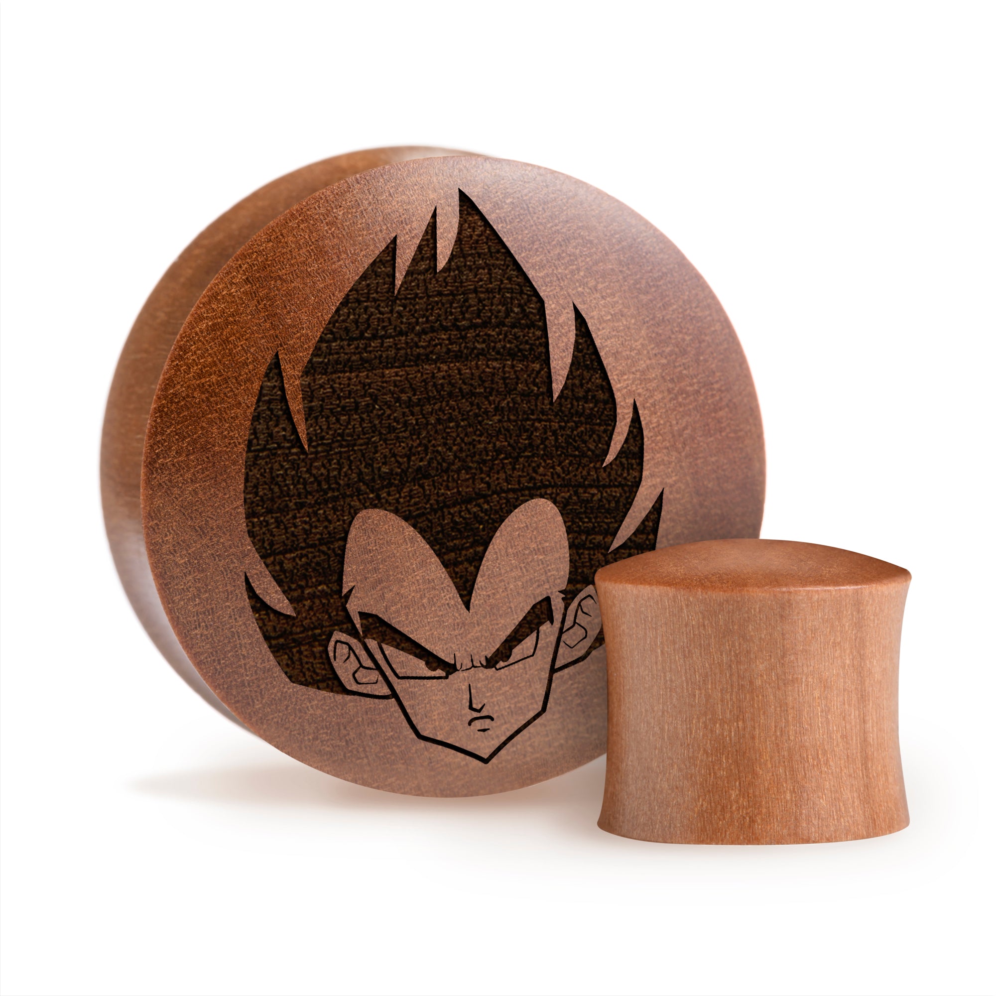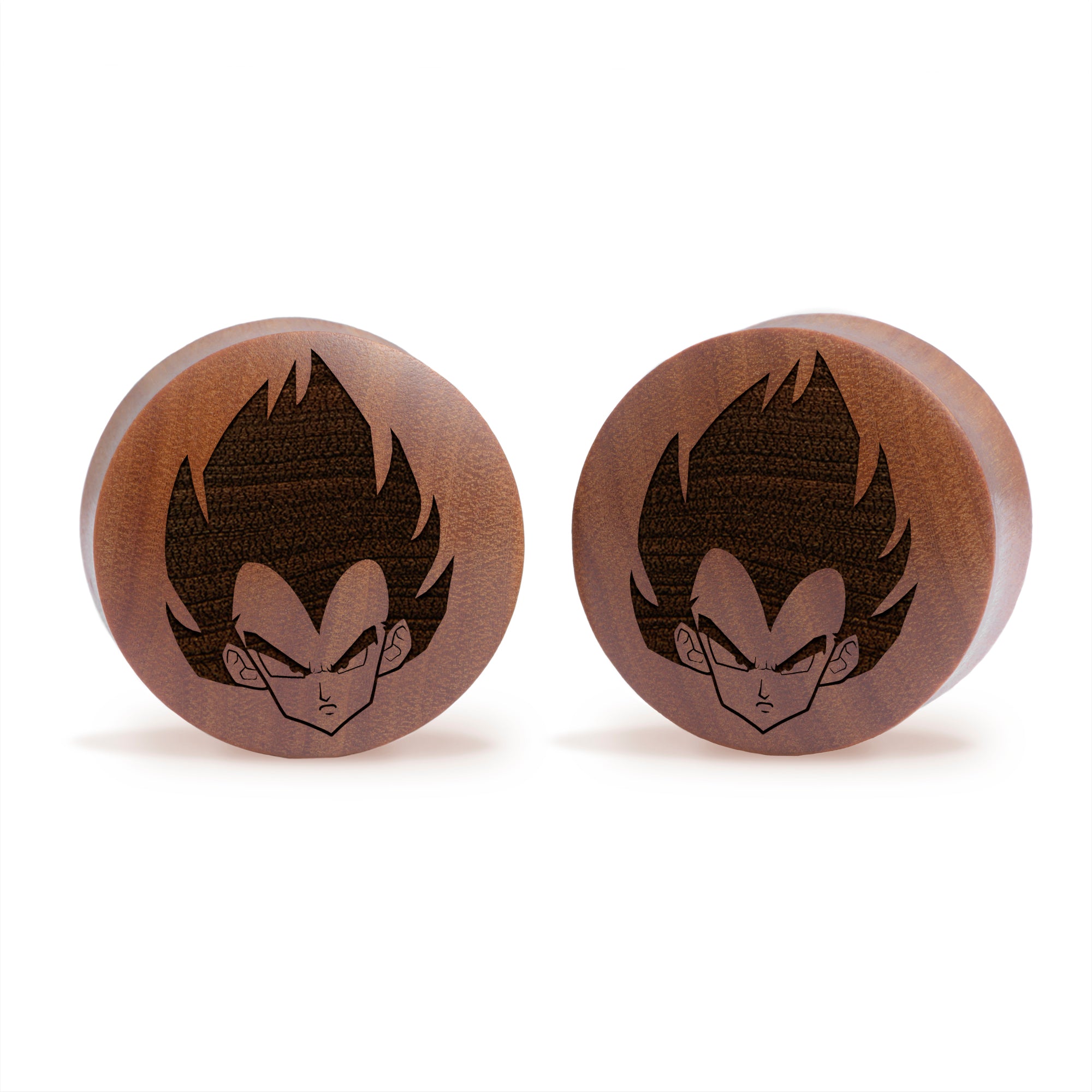 Convex Doubleflared Saba Wood Plugs featuring our laser engraved “VEGETA - DRAGON BALL Z" design.