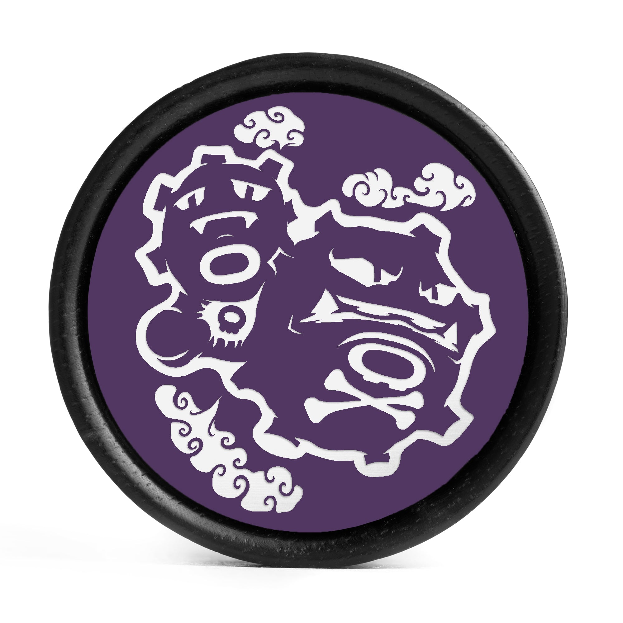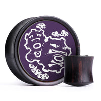 Limited Edition Double flared Ebony Purple & White Inlay Wood Plugs featuring the laser engraved Pokemon "Weezing"